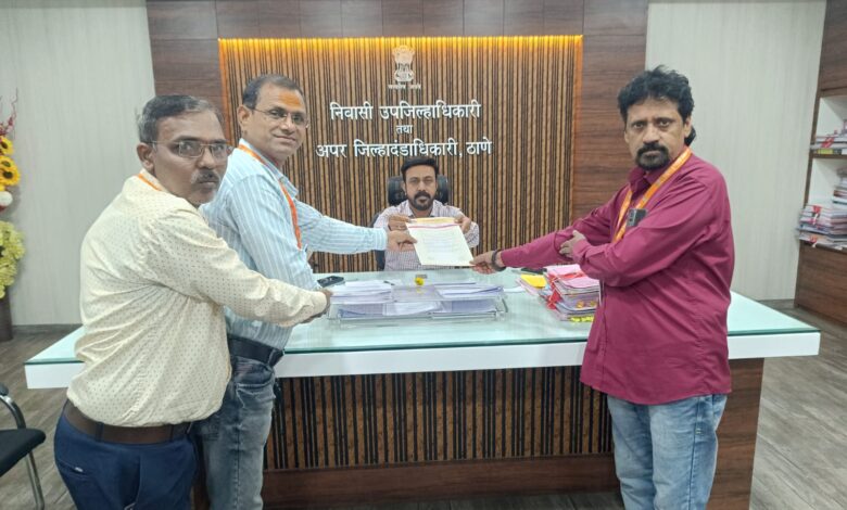 पत्रकारावर झालेल्या हल्ल्याचा निषेधार्थ ठाणे जिल्हाधिकारी कार्यालयात निवेदन सादर..