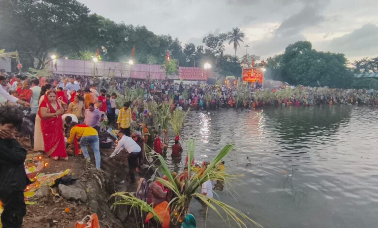 छटपूजेला कलवा पूर्व येथे उत्तर भारतीय महिला व हिंदी भाषिक यांची तुफान गर्दी.