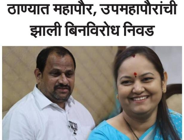 ठाण्यात भारतीय जनता पार्टी व शिवसेनेचे महापौर व उपमहापौर बिनविरोध निवड झाली.