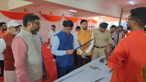 या कार्यक्रमाच्या निमित्ताने नियोजन भवन प्रांगणात ‘अश्वमेध प्रतिष्ठान इंटक ठाणे चॅप्टर’ यांच्या सौजन्याने शिवकालीन शस्त्रास्त्रांचे आणि वस्तूंचे प्रदर्शन भरविण्यात आले होते. जिल्हाधिकारी डॉ. श्रीकृष्ण पांचाळ यांनी या प्रदर्शनातील प्रत्येक वस्तूची बारकाईने माहिती घेतली आणि या ऐतिहासिक ठेव्याचे जतन केल्याबद्दल अश्वमेध प्रतिष्ठानचे कौतुक केले. या प्रदर्शनामुळे उपस्थित विद्यार्थी आणि नागरिकांना प्रत्यक्ष शिवकालीन युद्धनीती आणि साहित्याचा अनुभव घेता आला.